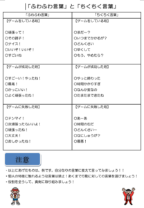 「ふわふわ言葉」と「ちくちく言葉」の両方をかけられた時の気持ちのちがいを体験してもらうシートです。